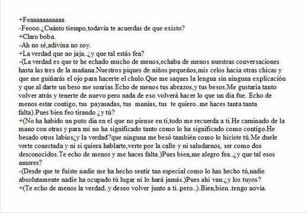 Abrázame. Dame todo de ti. Desnúdame con la mirada y cómeme a besos. Guárdame entre tus brazos y hazme reír. "Te echaba de menos". Susurros que erizan la piel. Dilo otra vez. Dilo. "Estás guapa". No me sueltes por favor. Vamos a quedarnos así unos minutos. O horas. O toda la vida. "No quiero soltarte". No lo hagas, me haces sentirme bien. Segura. Salvada. Aquí nada ni nadie puede hacerme daño. Solo tú y sí me dejas. Así que no lo hagas. Pégame a ti. Fuerte. Así. Casi no puedo respirar y tú aroma invade todo mi cuerpo. Te quiero. "Te quiero". Quiero más. Te quiero a ti. Entero, de arriba a abajo. Por fuera pero más por dentro. Jodidamente perfecto. "Quiero besarte". Más susurros al oído. Movimiento. Bésame ya, no aguanto más. Y me miras con esos ojos color miel en los que me perdí hace tiempo y aún no me he encontrado. Tú boca sabe a menta y a tí, el mejor sabor del mundo. Y solo puedo probarlo yo. Necesito decirte que "te quiero". Inconscientemente. Siento tu sonrisa en mi nunca. Vas a dejar marca. Tu territorio. Soy tuya pequeño. "Eres mía princesa". Me vuelves loca. Eres el tío más dulce del planeta Tierra y estás en mi cuello. En todo yo. En mi corazón. Te has apoderado de mi enteramente. Apriétame como si la vida te fuera en ello, pero espera que necesito acariciarte. "¿Qué haces? No te vayas". Nunca.